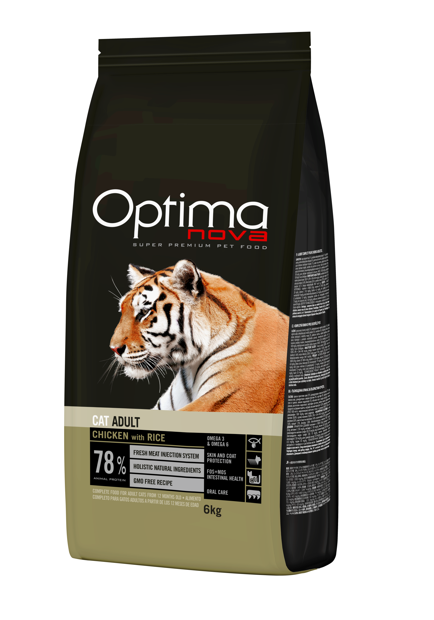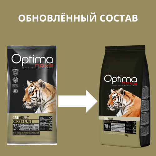 Свежее мясо курицы (40%). Дегидрированное мясо курицы (30%). Рис (12%). Кукуруза. Масла и жиры. Гидролизат куриной печени (5%). Кукурузный белок. Рисовый белок. Свекольный жом. Целлюлоза. Дрожжи. Натрия хлорид. Картофельный белок. Натрия полифосфат. Инулин (0,1 % — FOS). Мананоолигосахариды (0,1%). Калия хлорид. Экстракт юкки Шидигера. Экстрат цитрусовых.
