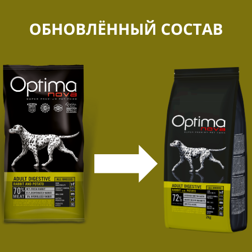 Свежее мясо кролика (40%). Дегидрированное мясо кролика (25%). Картофель (20%). Картофельный белок. Гидролизат мяса кролика (5%). Масла и жиры. Свекольный жом. Дрожжи. Натрия хлорид. Полифосфат натрия (0.3%). Калия хлорид. Инулин (1,000 мг/кг — FOS). Имбирь (1,000 мг/кг). Мананоолигосахариды (260 мг/кг). Экстракт юкки Шидигера.